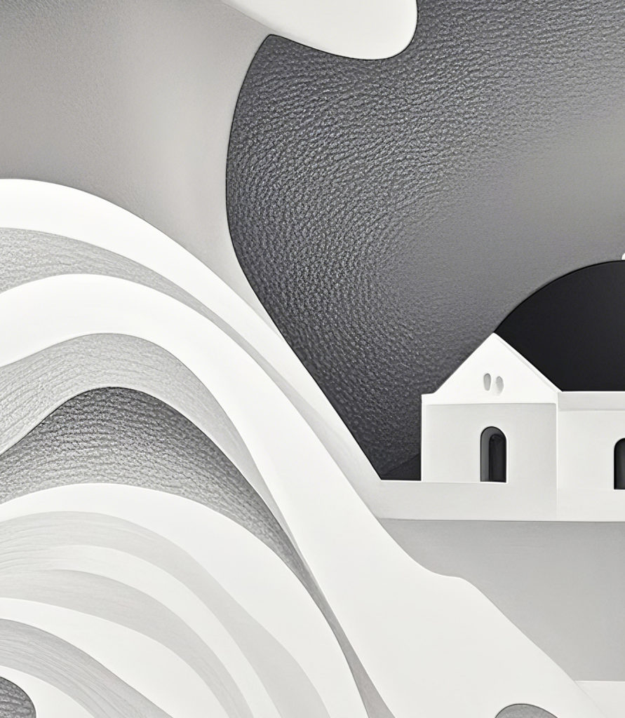 📝この作品は、洗練されたモノクロームの色調と流麗な曲線が印象的な、非常にエレガントなアートです。
