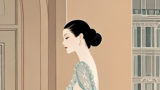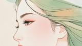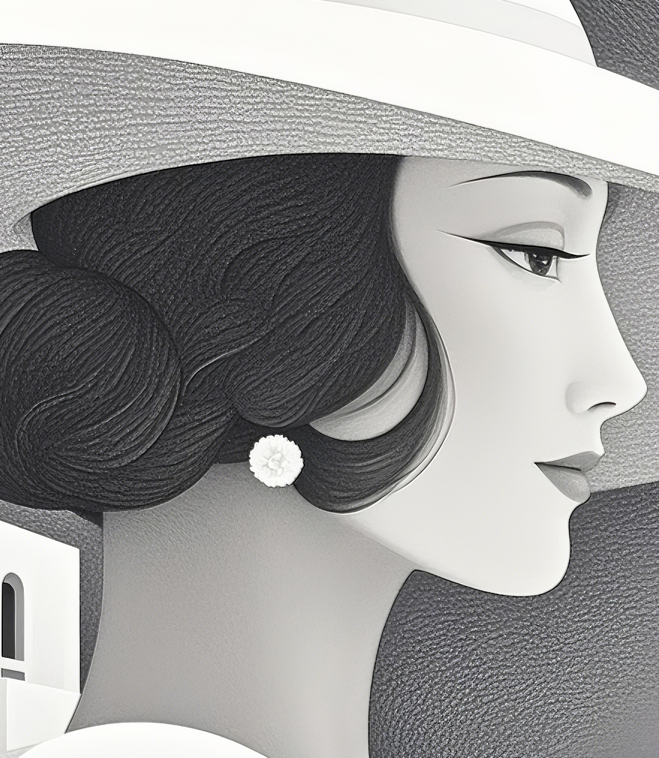 女性の横顔は柔らかく理想化され、クラシックな美しさと現代的なグラフィック感覚が融合しています。