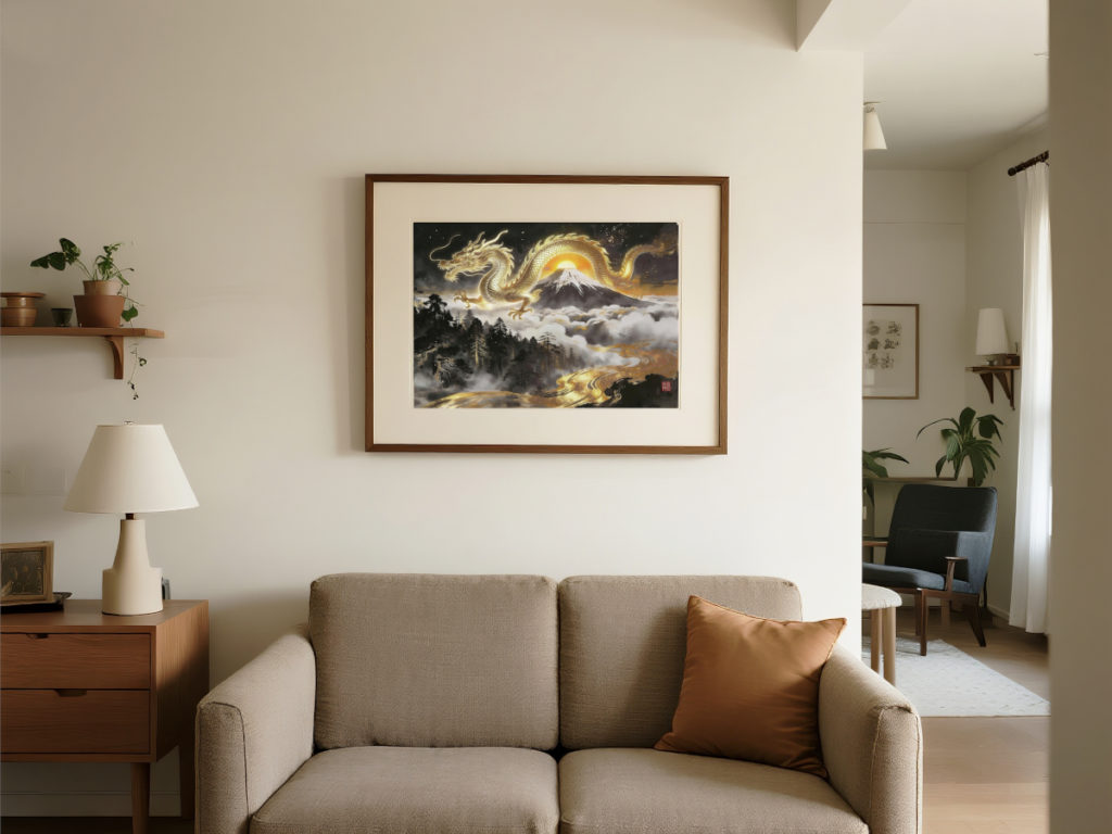 印刷して額装すれば、 本格的な“エネルギーアート”として空間に飾ることができます。 スマホ壁紙として設定すれば、 いつでも金龍のエネルギーを身近に感じることができます。
