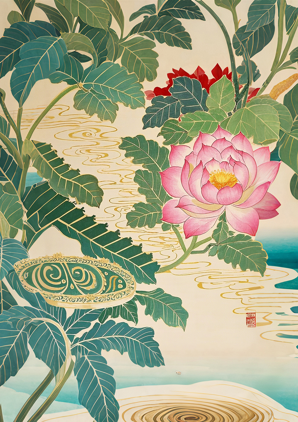 緑の植物モチーフで描く癒しと再生のスピリチュアルアート。木の気が空間を整え、心身の回復と調和をもたらします。