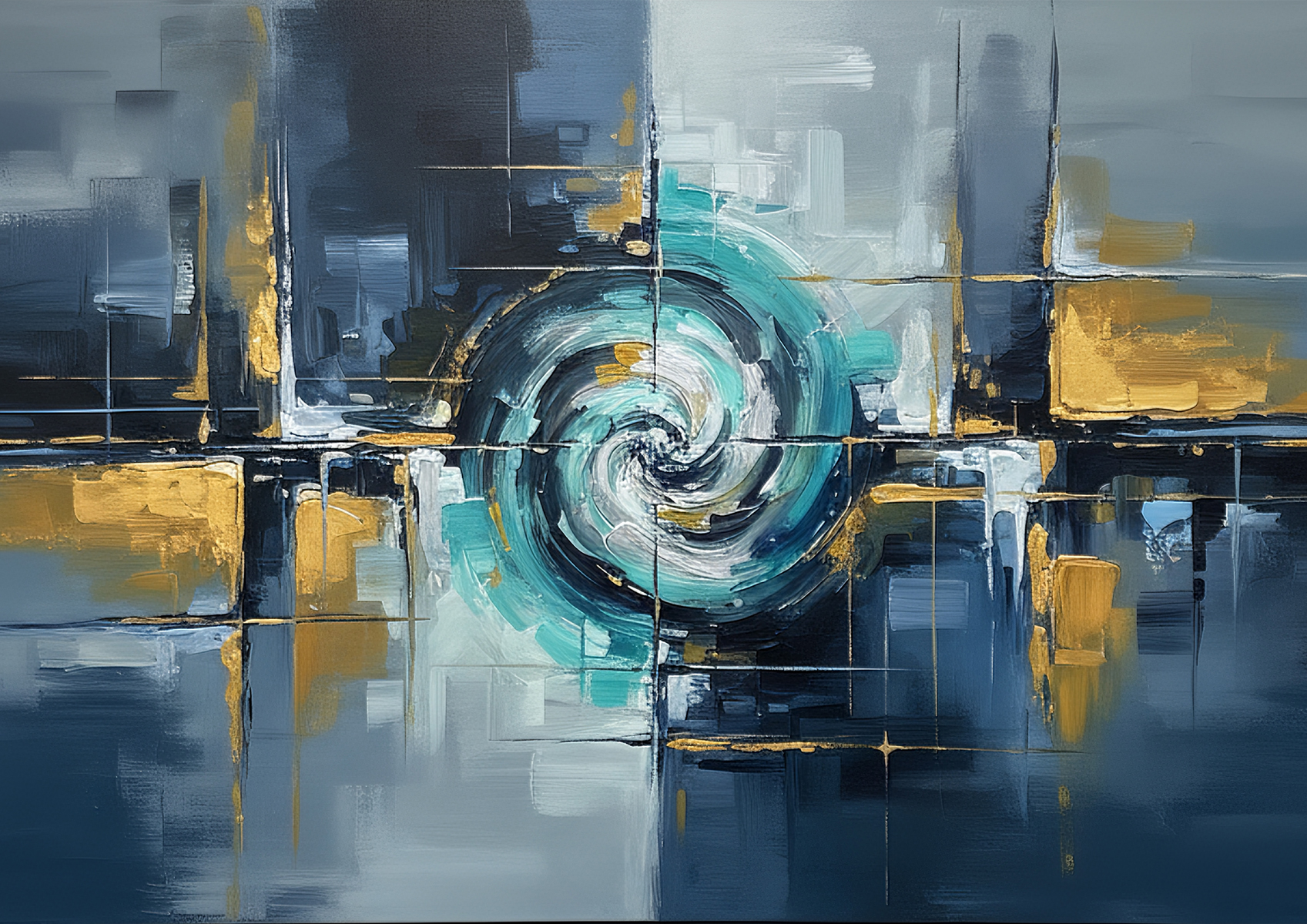 (画像をクリックすると全体表示になります)この作品は、遊び心のあるグラフィックな静物画と、額縁のある窓辺の構図が合わさった印象です。背景の四角い「窓」と、前景や窓内に配された多数の円形モチーフが対比を作り、幾何学と有機的な葉や鉢の曲線との間...