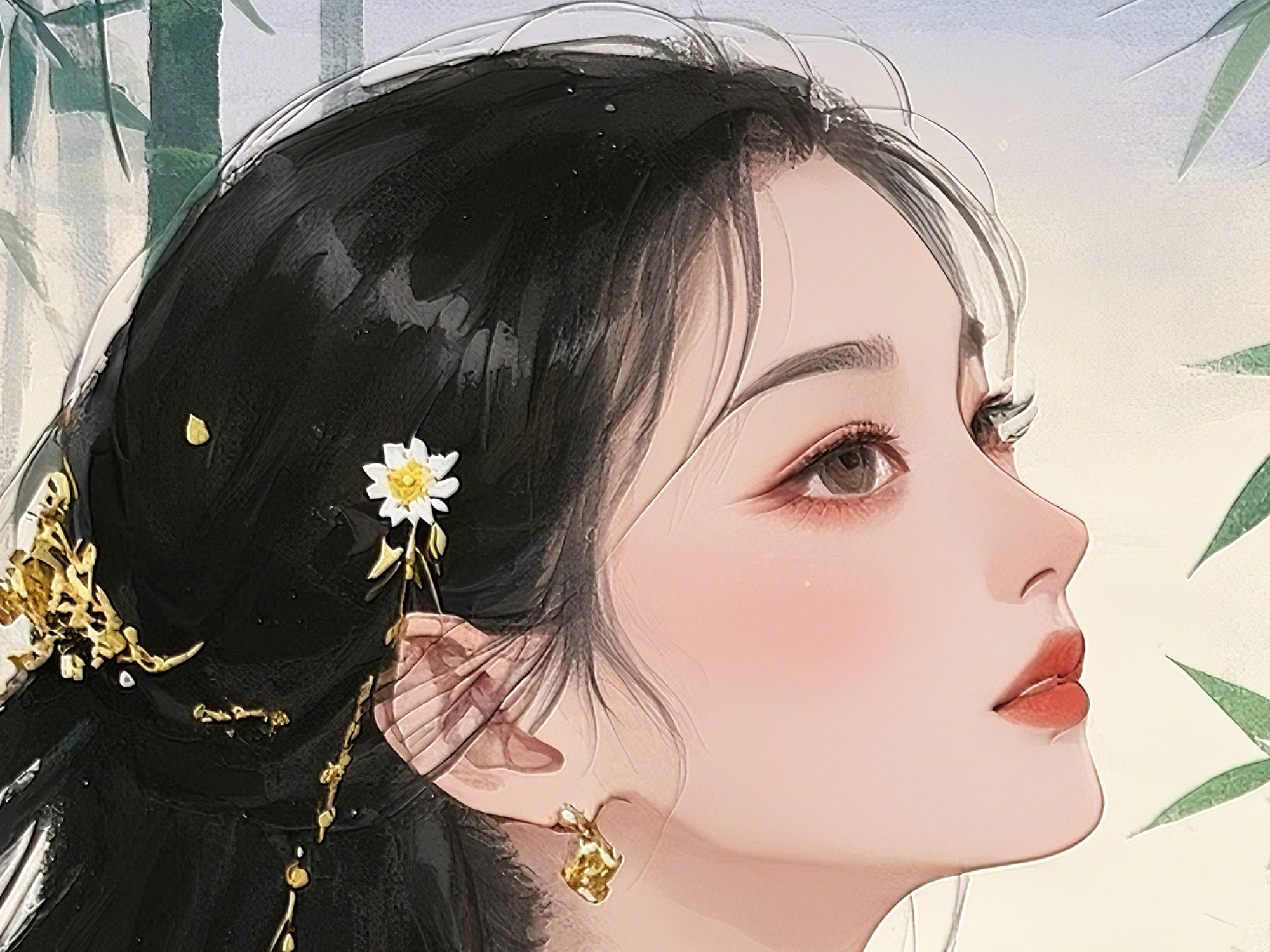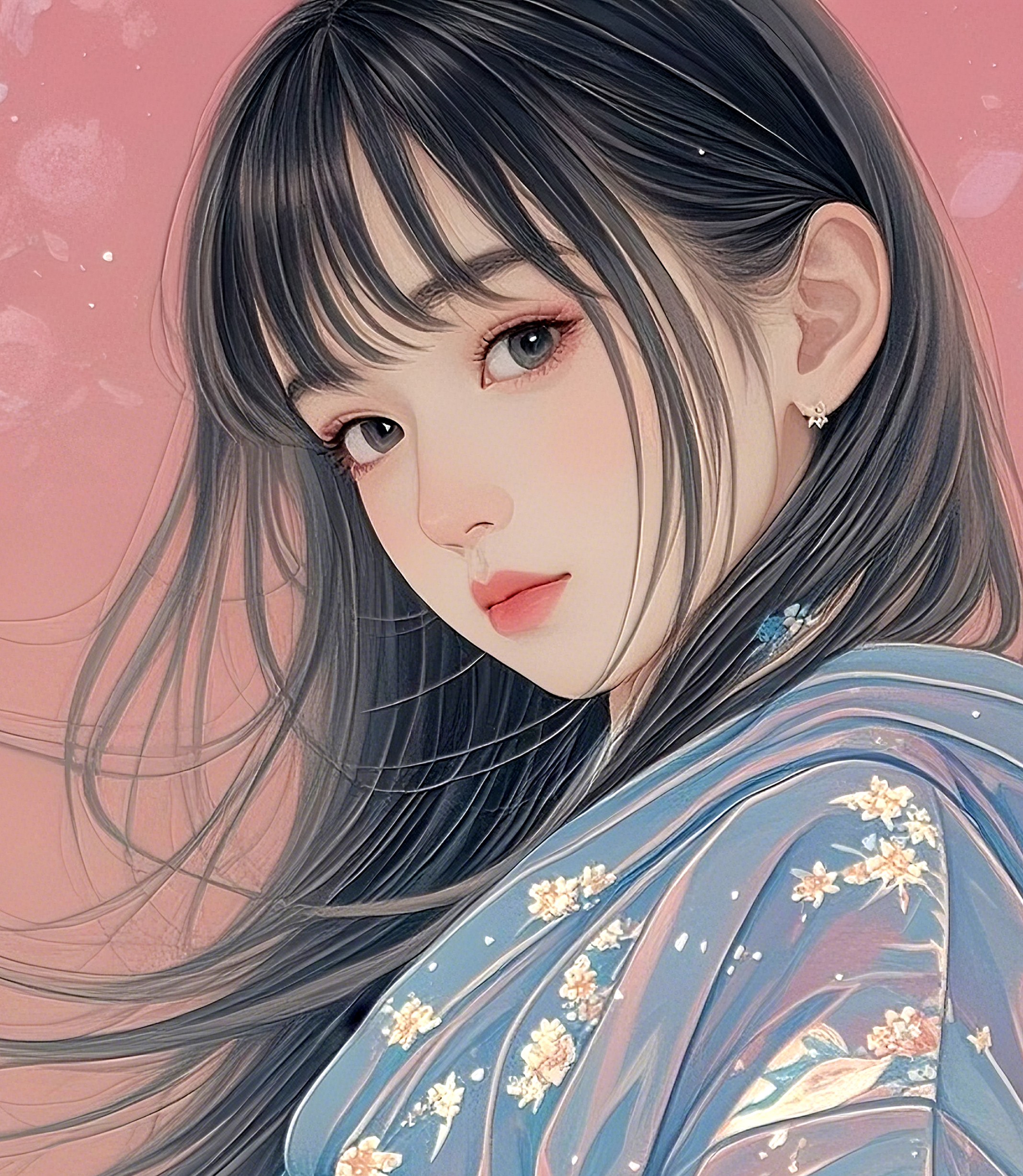 (画像をクリックすると全体表示になります)🌿 この作品は、伝統的な美意識と現代的なイラスト表現が見事に融合した、繊細で美しいポートレートです。流れるような髪の描写や、柔らかな光の表現、そして着物風の衣装に施された刺繍の細やかさが、気品と優雅...