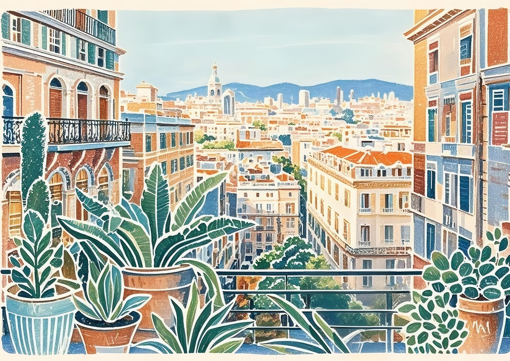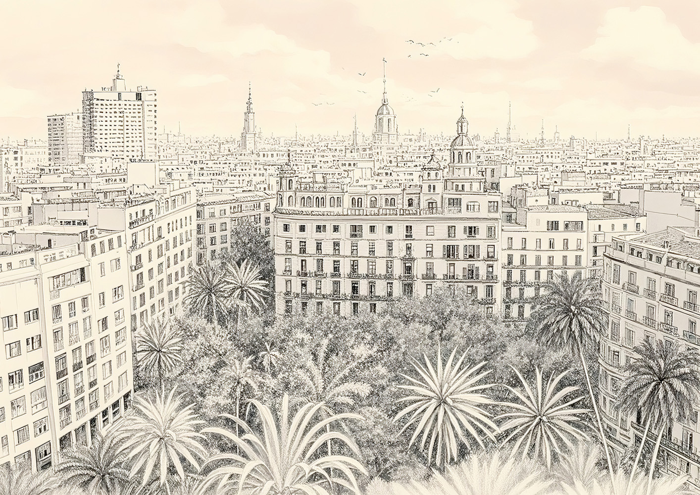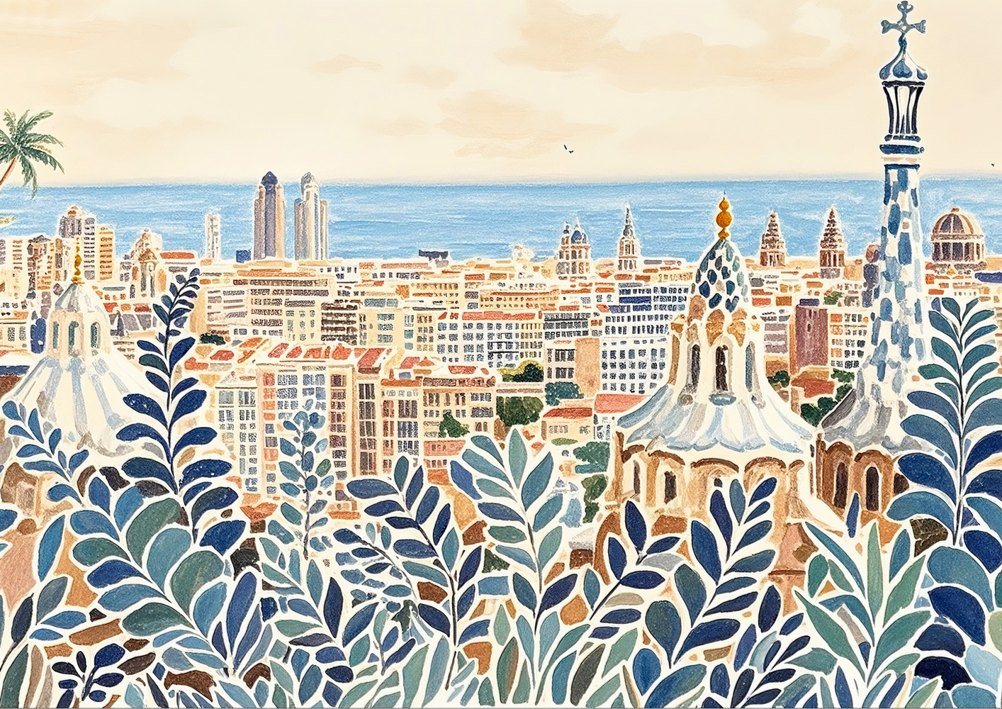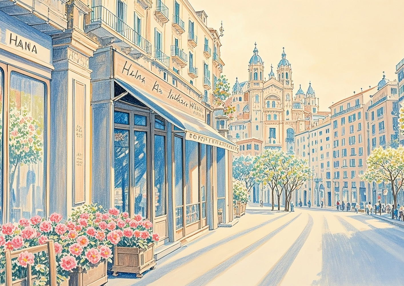 (画像をクリックすると全体表示になります)歴史ある建物と豊かな自然が共鳴する幻想的な風景アート。クラシカルな雰囲気の中に、現代的な感性が息づいています。暖色と緑の調和が心地よく、レトロで幻想的な空気を漂わせています。中央の女性像は鑑賞者の視...