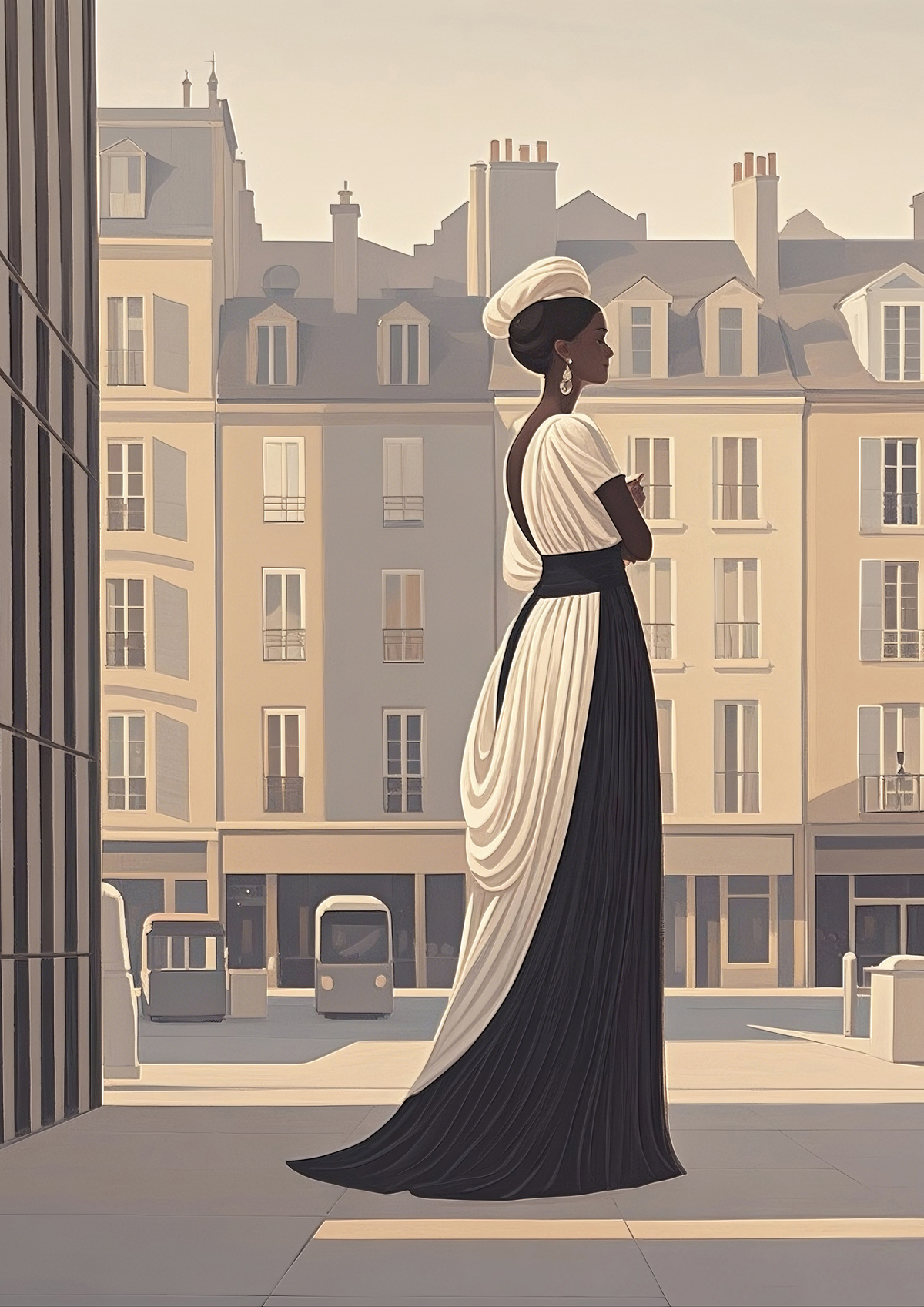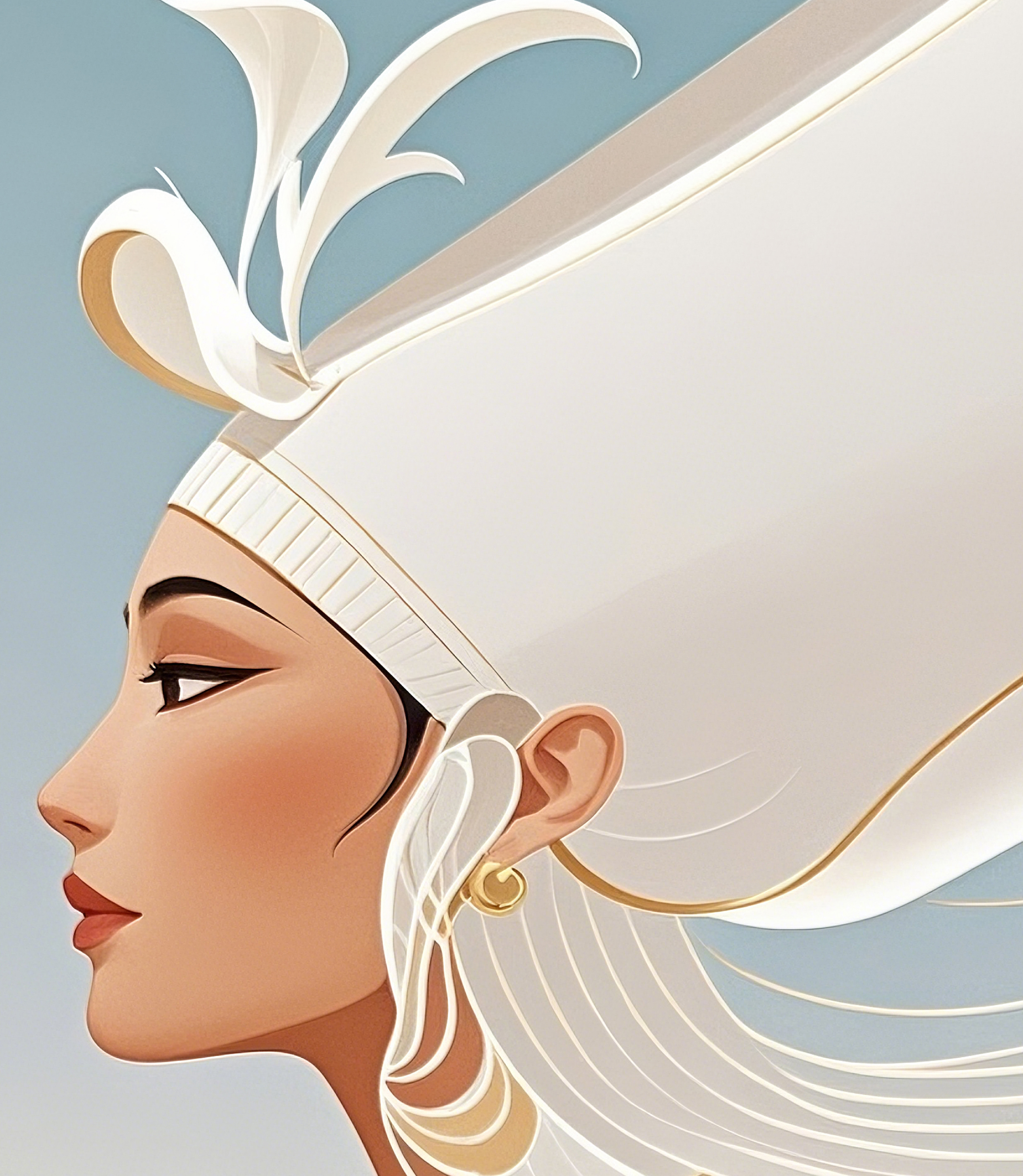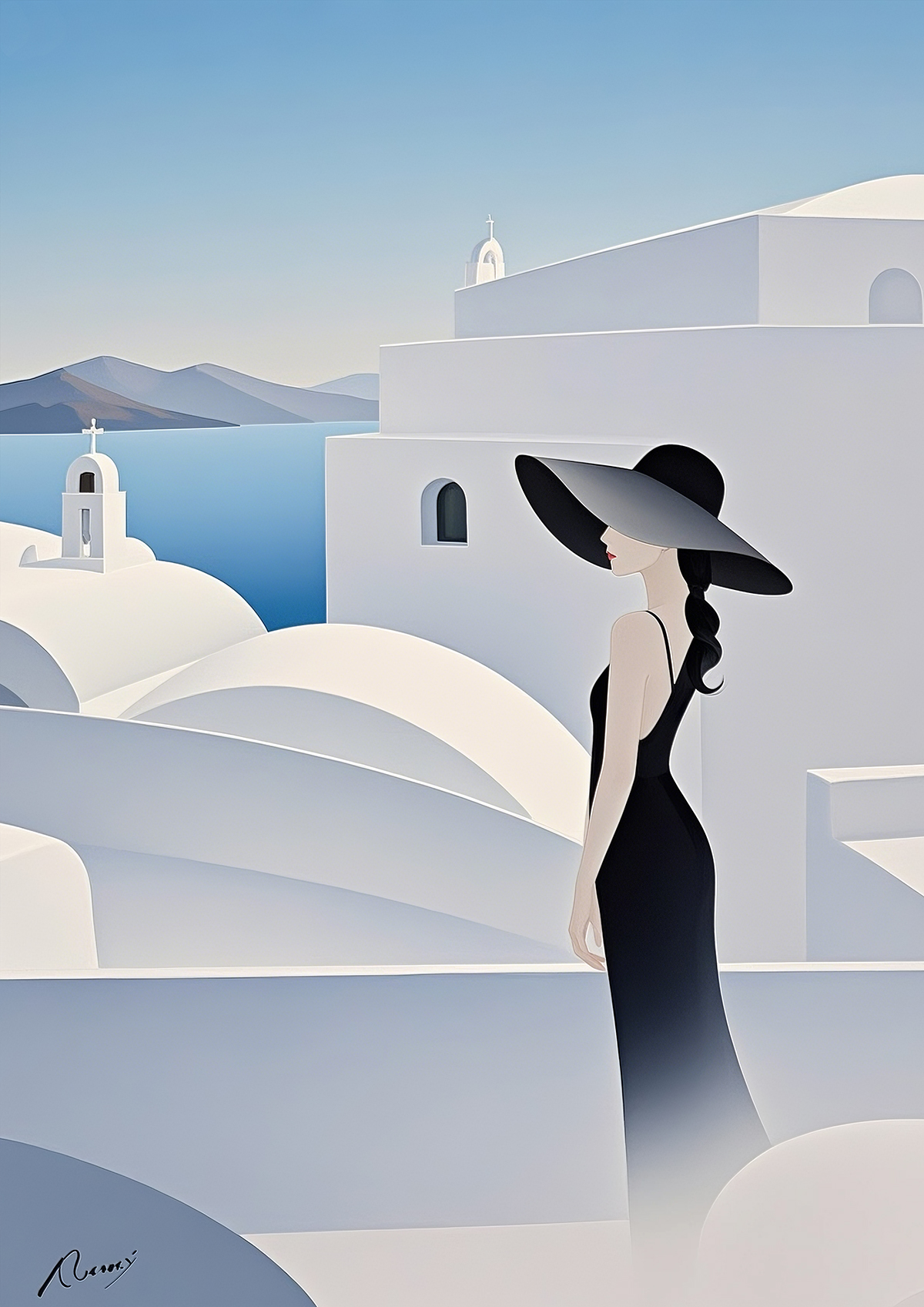 (画像をクリックすると全体表示になります)静かな夕暮れの海辺を背景に、上品な女性の横顔が印象的な作品です。帽子の白と空の群青のコントラストが洗練された美しさを生み、全体に穏やかな時間の流れを感じさせます。彼女の表情は静かな自信と孤高を感じさ...