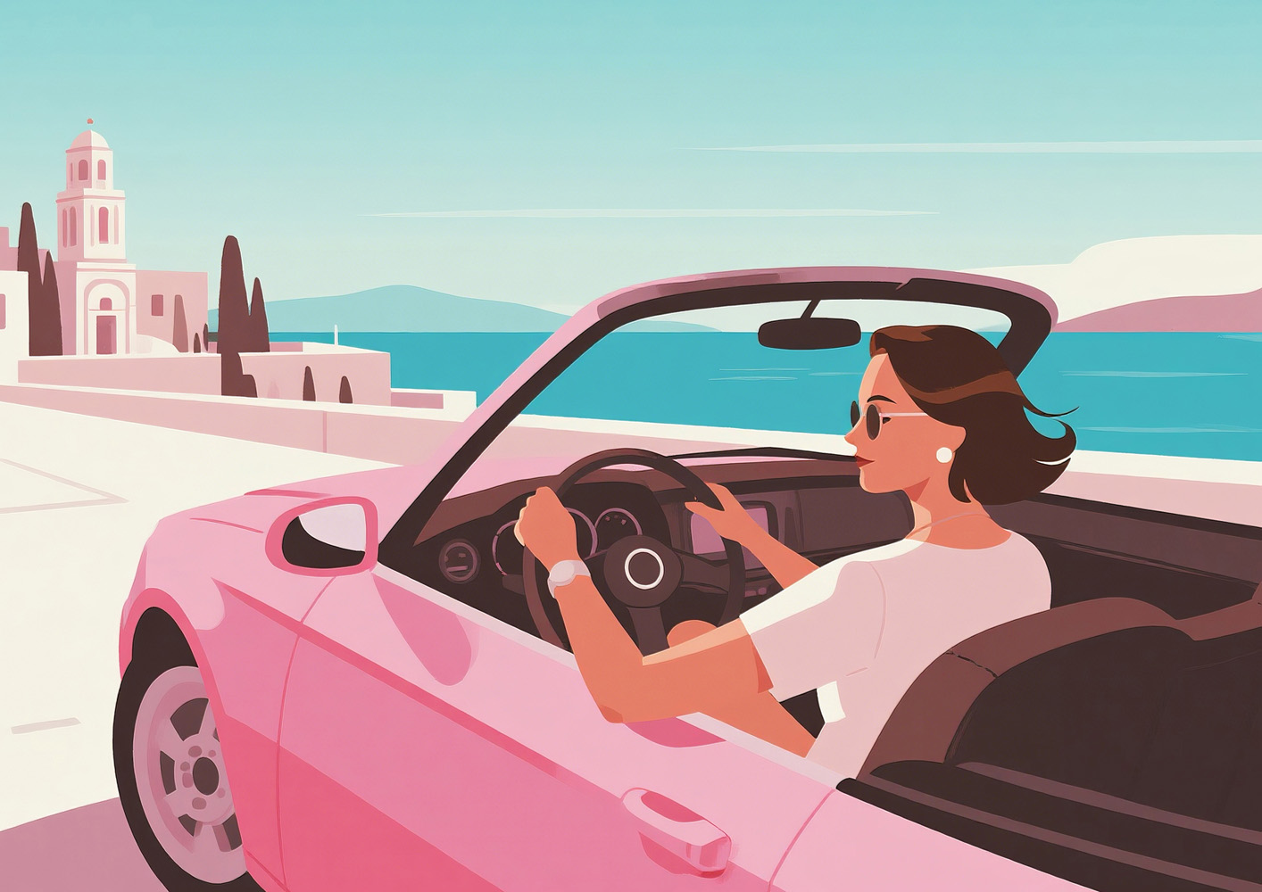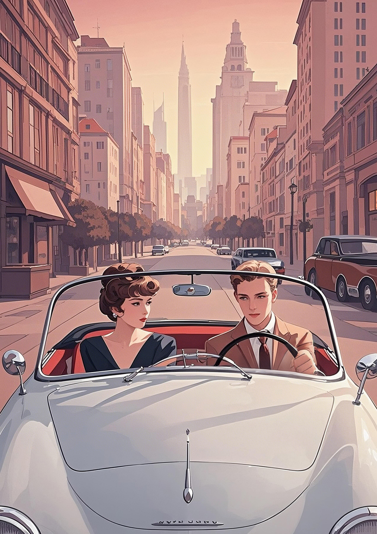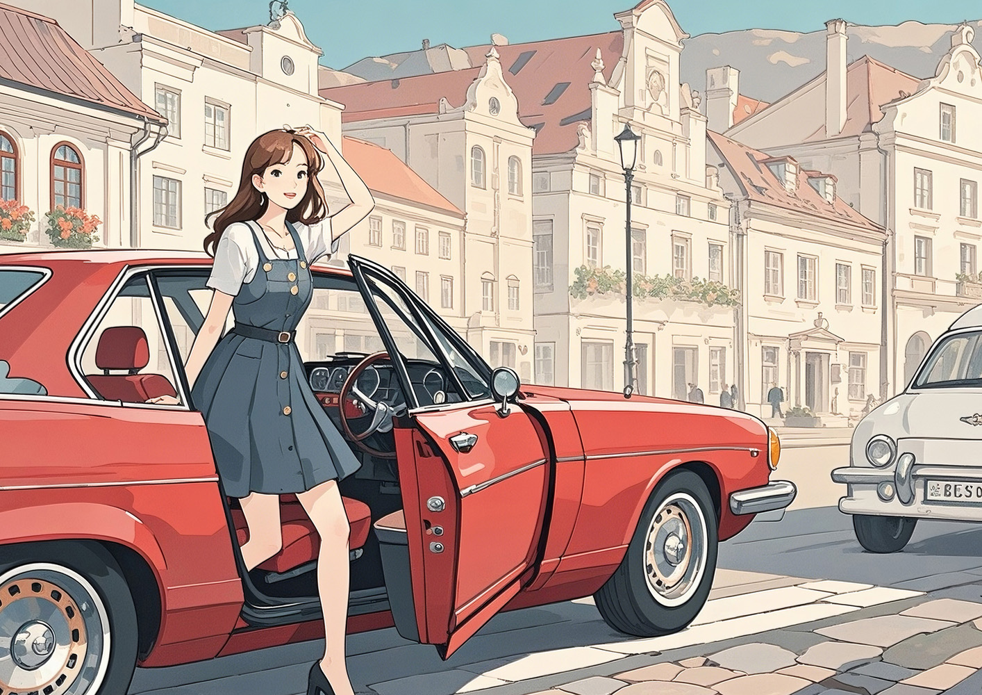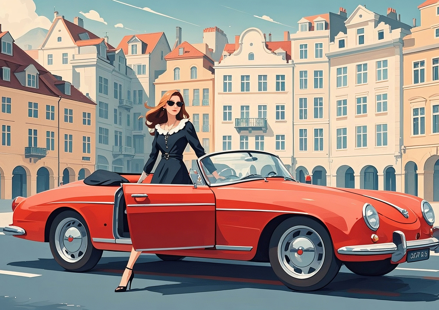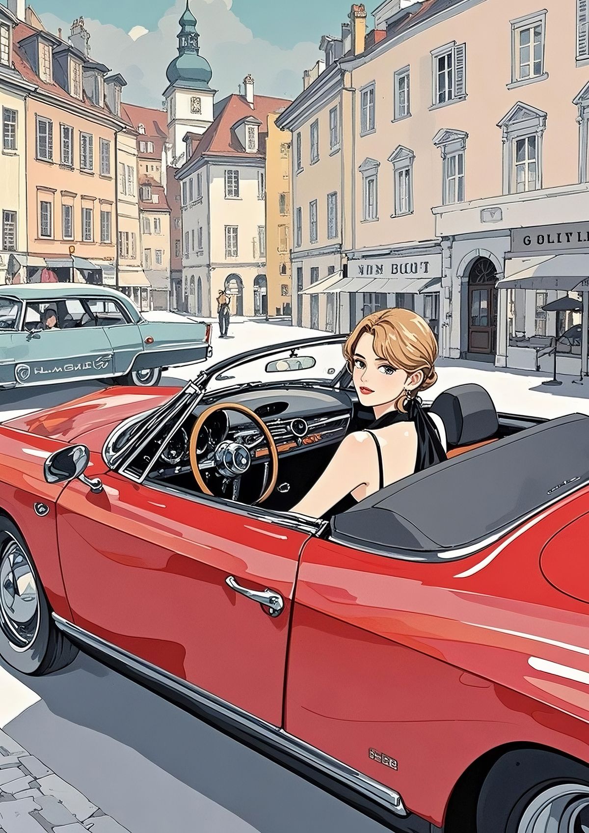 (画像をクリックすると全体表示になります)赤い車と自然体の女性が織りなす穏やかな日常を、柔らかな線と抑えた色調で優しく描き出しました。穏やかな午後にふと立ち止まるような、日常の中の美しい瞬間を描いた1枚です。やさしい色使いとナチュラルな構図...